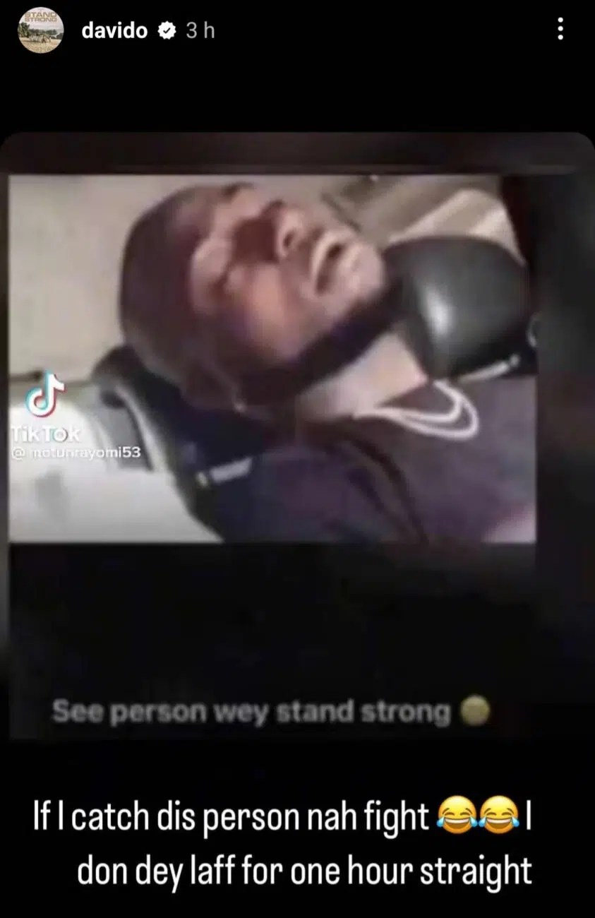 Davido wrote: “If I catch this person, na fight.” He added: “I don dey laff for one hour straight.”